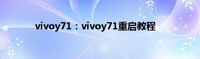 现在大家使用手机的频率越来越频繁,手机也为我们提供了许多的便利,今天小编也来说一下这个vivoy71:vivoy71重启教程相关的文章,这个操作其实不复杂,接下来就给大家介绍一下vivoy71:vivoy71重启教程,一起来看看吧: