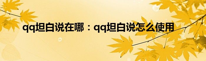 现在大家使用手机的频率越来越频繁,手机也为我们提供了许多的便利,今天小编也来说一下这个qq坦白说在哪:qq坦白说怎么使用相关的文章,这个操作其实不复杂,接下来就给大家介绍一下qq坦白说在哪:qq坦白说怎么使用,一起来看看吧: