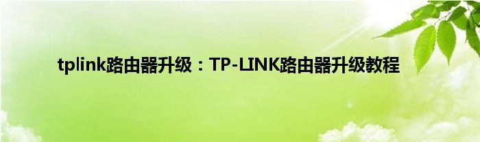 现在大家使用手机的频率越来越频繁,手机也为我们提供了许多的便利,今天小编也来说一下这个tplink路由器升级:TP-LINK路由器升级教程相关的文章,这个操作其实不复杂,接下来就给大家介绍一下tplink路由器升级:TP-LINK路由器升级教程,一起来看看吧: