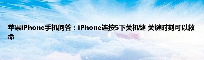 苹果iPhone手机问答:iPhone连按5下关机键 关键时刻可以救命