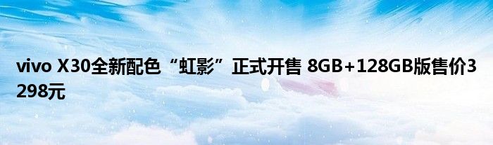 今天来聊聊一篇关于vivo X30全新配色“虹影”正式开售 8GB+128GB版售价3298元的文章,现在就为大家来简单介绍下vivo X30全新配色“虹影”正式开售 8GB+128GB版售价3298元,希望对各位小伙伴们有所帮助。