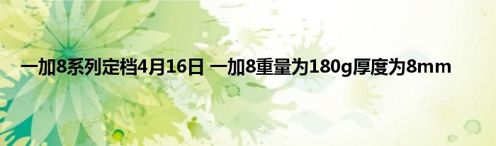今天来聊聊一篇关于一加8系列定档4月16日 一加8重量为180g厚度为8mm的文章,现在就为大家来简单介绍下一加8系列定档4月16日 一加8重量为180g厚度为8mm,希望对各位小伙伴们有所帮助。