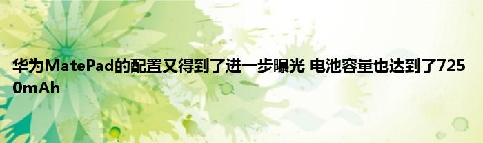 今天来聊聊一篇关于华为MatePad的配置又得到了进一步曝光 电池容量也达到了7250mAh的文章,现在就为大家来简单介绍下华为MatePad的配置又得到了进一步曝光 电池容量也达到了7250mAh,希望对各位小伙伴们有所帮助。