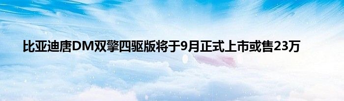 近日,根据比亚迪官方消息,比亚迪唐DM双擎四驱版将于9月份正式上市,新车命名为“四驱尊贵型”,售价或为23万元左右。据悉,该版本车型将搭载一台2.0TI发动机+单电机的混合动力系统,并搭配比亚迪第三代DM技术、电四驱系统等。