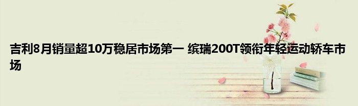 今天来分享一篇个人对吉利8月销量超10万稳居市场第一 缤瑞200T领衔年轻运动轿车市场相关分析,众所周知,无论是在坊间民众,还是在汽车媒体的议论中,都是不错的,至于产品到底香不香,通过测试还是可以对吉利8月销量超10万稳居市场第一 缤瑞200T领衔年轻运动轿车市场的产品力分析分析的,一起来看看吧