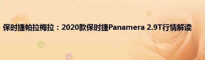 今天来分享一篇个人对保时捷帕拉梅拉:2020款保时捷Panamera 2.9T行情解读相关分析,众所周知,无论是在坊间民众,还是在汽车媒体的议论中,都是不错的,至于产品到底香不香,通过测试还是可以对保时捷帕拉梅拉:2020款保时捷Panamera 2.9T行情解读的产品力分析分析的,一起来看看吧: