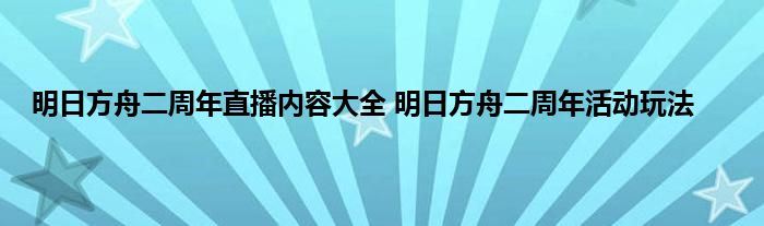 最近玩明日方舟的玩家都在问,明日方舟二周年直播内容是什么?明日方舟二周年直播已经结束,相信还有很多玩家没有来得及观看,小编我特意整理了相关的资讯,下面就是编编为大家带来的明日方舟二周年特殊直播内容介绍了,有兴趣的小伙伴们都来看看吧!