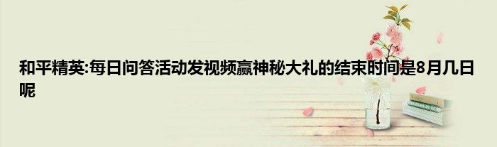 小编今天给各位玩家朋友们带来的是和平精英:每日问答活动发视频赢神秘大礼的结束时间是8月几日呢,有记得的玩家朋友吗?不记得也没有关系,小编已经帮助大家把和平精英:每日问答活动发视频赢神秘大礼的结束时间是8月几日呢找了出来,你只需要动动你的小手就可以轻松知道啦,快来瞧一瞧吧。