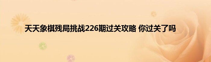 最近玩天天象棋残局挑战的玩家都在问,游戏里面的第226期怎么过?天天象棋手游在4月26日开启了残局挑战第226期关卡,棋手们需要在最少的步数中取胜。下面就是编编为大家带来的天天象棋4月26日残局挑战226关通关攻略了,小伙伴们都来看看吧!