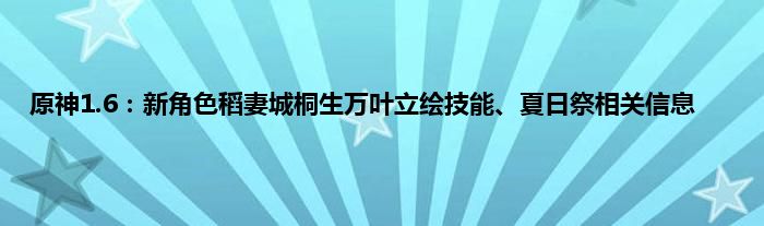 原神1.5版周三更新,关于1.5版本的内容,大家都了解得差不多了。目前关于1.6版本的情报还很少,外服有多位内鬼同时放出了新角色桐生万叶的资料,包括立绘图、技能图等等,还有夏日祭的相关情报。