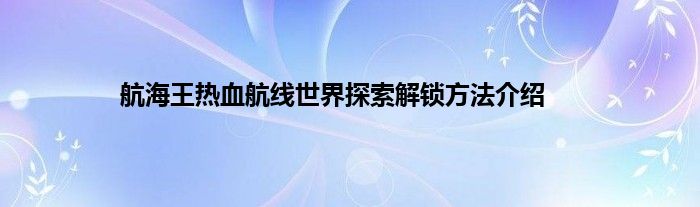航海王热血航线世界探究解锁攻略