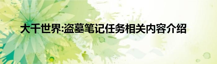 小编今天给各位玩家朋友们带来的是大千世界:盗墓笔记任务相关内容介绍,有记得的玩家朋友吗?不记得也没有关系,小编已经帮助大家把大千世界:盗墓笔记任务相关内容介绍找了出来,你只需要动动你的小手就可以轻松知道啦,快来瞧一瞧吧。