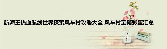 航海王热血航线世界探究风车村攻略大全,世界探究是游戏中的主要玩法之一,玩家可以在各个小镇中找到各种宝箱,剧情任务,触发彩蛋等等,获得大量的奖励,有玩家在问风车村的世界探究任务有哪些,下面就来尾随小编一起来看看详细的攻略大全吧。