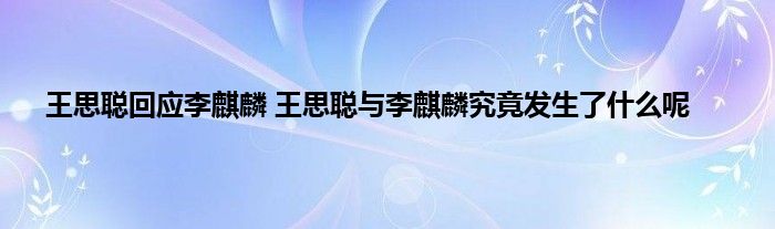 今天来聊聊一篇关于王思聪回应李麒麟,王思聪与李麒麟究竟发生了什么呢的文章,现在就为大家来简单介绍下王思聪回应李麒麟,王思聪与李麒麟究竟发生了什么呢,希望对各位小伙伴们有所帮助。