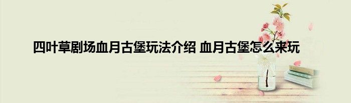 四叶草剧场游戏上线以来就不断的给玩家们推出一些全新的活动玩法,其中就有一个血月古堡的活动,这个活动当中可以得到丰厚的奖励,很多玩家都不知道这个活动的详细规则和玩法是怎么样的了,那下面就让小编给玩家们带来这篇血月古堡活动玩法的攻略,希翼能够帮助到大家。