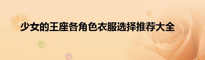 感谢你在百忙之中抽出时间阅读少女的王座各角色衣服选择推举大全这篇文章。你觉得今天少女的王座各角色衣服选择推举大全话题怎么样?关于少女的王座各角色衣服选择推举大全这篇文章的任何评论都可以告诉我。你的每一个建议都是对小编辑的肯定和鼓舞。小编明天会继续给你带来更多的好内容。我希翼你不要错过。感谢支持哟!