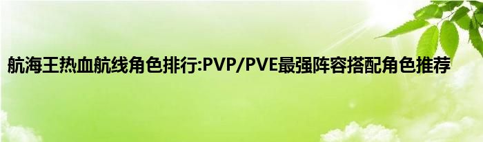 航海王热血航线角色排行:PVP/PVE最强阵容搭配角色推荐