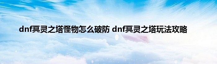 dnf冥灵之塔怪物怎么破防 dnf冥灵之塔玩法攻略