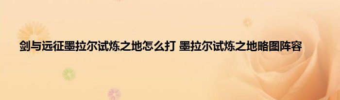 剑与远征墨拉尔试炼之地攻略图阵容