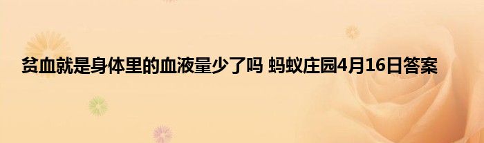 贫血就是身体里的血液量少了吗??蚂蚁庄园每天都会问玩家一些问题,答对了的话就能领取饲料给小鸡喂食。4月16日的最新问题发布,以下是详细答案,一起来看看吧。