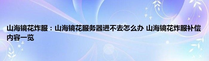小编今天给各位玩家朋友们带来的是山海镜花炸服:山海镜花服务器进不去怎么办,山海镜花炸服补偿内容一览,有记得的玩家朋友吗?不记得也没有关系,小编已经帮助大家把山海镜花炸服:山海镜花服务器进不去怎么办,山海镜花炸服补偿内容一览找了出来,你只需要动动你的小手就可以轻松知道啦,快来瞧一瞧吧。
