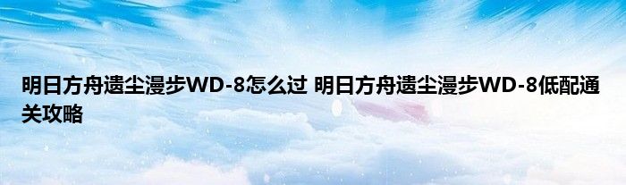 明日方舟遗尘闲逛WD-8怎么过?明日方舟遗尘闲逛关卡已经上线,这次的关卡对老手来说应该是比较简单的,不过如果是没有太多资源的新手,就需要具体的打法攻略了。WD-8是卡关很多人的一关,下面是具体的低配攻略,还没通关的玩家可以了解一下。