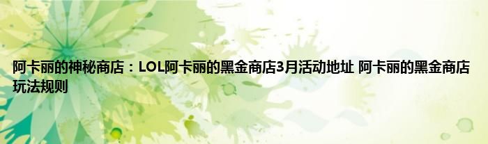以上就是阿卡丽的神秘商店:LOL阿卡丽的黑金商店3月活动地址,阿卡丽的黑金商店玩法规则的推荐,相信通过阿卡丽的神秘商店:LOL阿卡丽的黑金商店3月活动地址,阿卡丽的黑金商店玩法规则这篇文章能帮到你,也欢迎对游戏很感兴趣小伙伴们一起来探讨。
