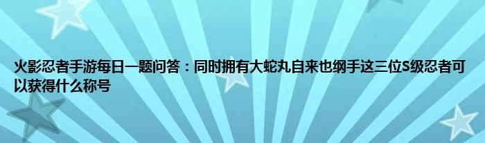 以上就是火影忍者手游每日一题问答:同时拥有大蛇丸自来也纲手这三位S级忍者可以获得什么称号的推荐,相信通过火影忍者手游每日一题问答:同时拥有大蛇丸自来也纲手这三位S级忍者可以获得什么称号这篇文章能帮到你,也欢迎对游戏很感兴趣小伙伴们一起来探讨。