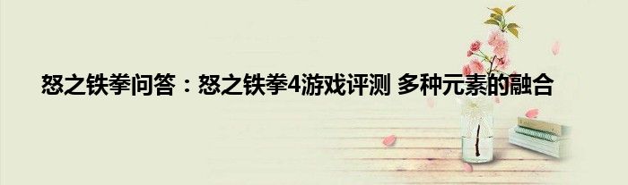以上就是怒之铁拳4问答:怒之铁拳4游戏评测,多种元素的融合的推荐,相信通过怒之铁拳4问答:怒之铁拳4游戏评测,多种元素的融合这篇文章能帮到你,也欢迎对游戏很感兴趣小伙伴们一起来探讨。