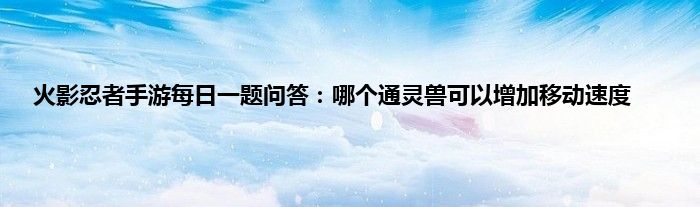 今天来聊聊关于火影忍者手游每日一题问答:哪个通灵兽可以增加移动速度的文章,游戏是很多人的选择,但是游戏玩多了也会身心疲惫,现在就为大家来简单介绍下火影忍者手游每日一题问答:哪个通灵兽可以增加移动速度,希望对各位小伙伴们有所帮助。