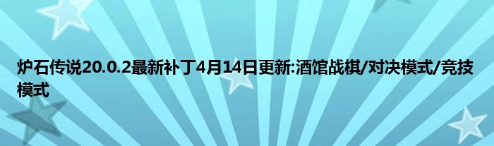 炉石传说最新补丁20.0.2补丁更新上线!在炉石传说4月14日版本更新中,大量卡牌平衡性改动:除了标准模式外,还有酒馆战棋、对决模式平衡性更新,这无疑会对新版本卡组套牌强弱带来全新影响。一起来看看炉石传说最新补丁4月14日更新内容详情吧。