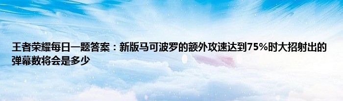 以上就是王者荣耀每日一题答案:新版马可波罗的额外攻速达到75%时大招射出的弹幕数将会是多少的推荐,相信通过王者荣耀每日一题答案:新版马可波罗的额外攻速达到75%时大招射出的弹幕数将会是多少这篇文章能帮到你,也欢迎对游戏很感兴趣小伙伴们一起来探讨。