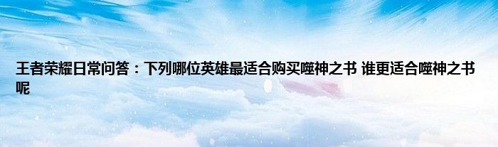 以上就是王者荣耀日常问答:下列哪位英雄最适合购买噬神之书,谁更适合噬神之书呢的推荐,相信通过王者荣耀日常问答:下列哪位英雄最适合购买噬神之书,谁更适合噬神之书呢这篇文章能帮到你,也欢迎对游戏很感兴趣小伙伴们一起来探讨。