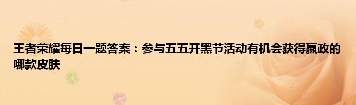 以上就是王者荣耀每日一题答案:参与五五开黑节活动有机会获得嬴政的哪款皮肤的推荐,相信通过王者荣耀每日一题答案:参与五五开黑节活动有机会获得嬴政的哪款皮肤这篇文章能帮到你,也欢迎对游戏很感兴趣小伙伴们一起来探讨。