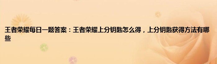 问:王者荣耀上分钥匙怎么得?上分钥匙获得方法有哪些?