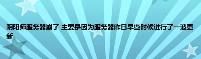 以上就是阴阳师服务器崩了 主要是因为服务器昨日早些时候进行了一波更新的推荐,相信通过阴阳师服务器崩了 主要是因为服务器昨日早些时候进行了一波更新这篇文章能帮到你,也欢迎对游戏很感兴趣小伙伴们一起来探讨。