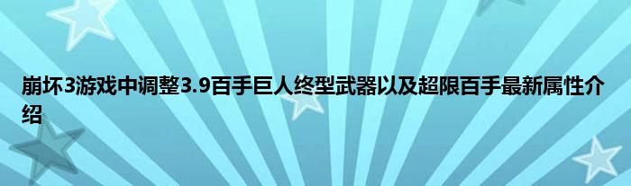 今天来聊聊关于崩坏3游戏中调整3.9百手巨人终型武器以及超限百手最新属性介绍的文章,游戏是很多人的选择,但是游戏玩多了也会身心疲惫,现在就为大家来简单介绍下崩坏3游戏中调整3.9百手巨人终型武器以及超限百手最新属性介绍,希望对各位小伙伴们有所帮助。