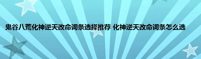 鬼谷八荒化神逆天改命词条选择。鬼谷八荒经过更新之后,新增加了化神境,玩家在化神境可以逆天改命,有不少的词条供玩家选择,很多玩家不知道化神境的逆天改命词条怎么选,小编收集整理了相关攻略,下面就一起来看看吧。