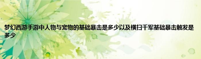 以上就是梦幻西游手游中人物与宠物的基础暴击是多少以及横扫千军基础暴击触发是多少的推荐,相信通过梦幻西游手游中人物与宠物的基础暴击是多少以及横扫千军基础暴击触发是多少这篇文章能帮到你,也欢迎对游戏很感兴趣小伙伴们一起来探讨。