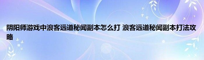 今天来聊聊关于阴阳师游戏中浪客远道秘闻副本怎么打 浪客远道秘闻副本打法攻略的文章,游戏是很多人的选择,但是游戏玩多了也会身心疲惫,现在就为大家来简单介绍下阴阳师游戏中浪客远道秘闻副本怎么打 浪客远道秘闻副本打法攻略,希望对各位小伙伴们有所帮助。