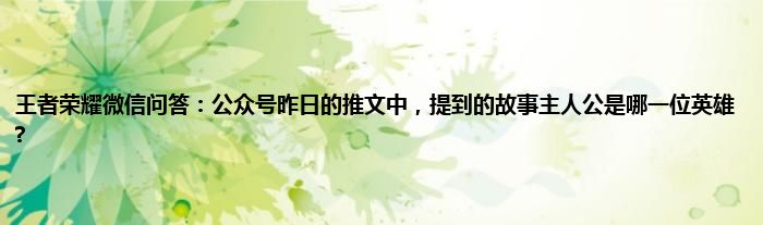 1、王者荣耀微信问题:在公众号昨日的推文中,提到的故事主人公是哪一位英雄?