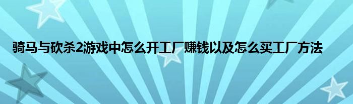 小编今天给各位玩家朋友们带来的是骑马与砍杀2游戏中怎么开工厂赚钱以及怎么买工厂方法,有记得的玩家朋友吗?不记得也没有关系,小编已经帮助大家把骑马与砍杀2游戏中怎么开工厂赚钱以及怎么买工厂方法找了出来,你只需要动动你的小手就可以轻松知道啦,快来瞧一瞧吧。