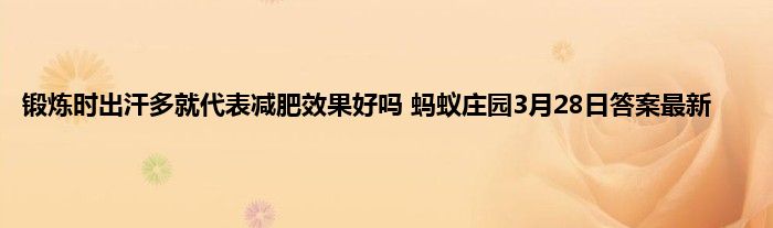 蚂蚁庄园小课堂每天都会给玩家们带来一些的问题供你来回答,当你回答了正确的答案之后就能够得到饲料奖励,3月27日最新的题目已经更新出来,今天的问题就是锻炼时出汗多就代表减肥效果好吗,当然这道题目的答案一些玩家或许还不知道,那下面就让小编告诉一下玩家3月28日最新答案吧。