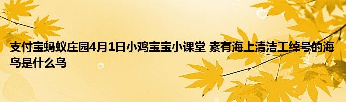 关于支付宝蚂蚁庄园4月1日小鸡宝宝小课堂素有海上清洁工绰号的海鸟是什么鸟,相信这个话题最近很火热吧,那么现在小编就为小伙伴说说支付宝蚂蚁庄园4月1日小鸡宝宝小课堂素有海上清洁工绰号的海鸟是什么鸟主要因素,希望对大家有所帮助。