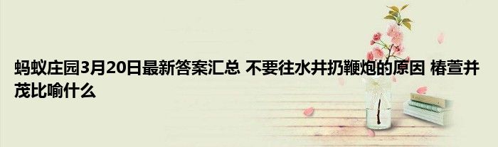 蚂蚁庄园今天3月20日的问题已经出来了,分别是“椿萱并茂”意思是指椿树和萱草都茂盛,用来比喻什么以及为什么最好不要往下水井扔鞭炮?答对了可以获得小鸡饲料180g的奖励,那么答案是什么呢,下面就来跟着小编一起看看吧。