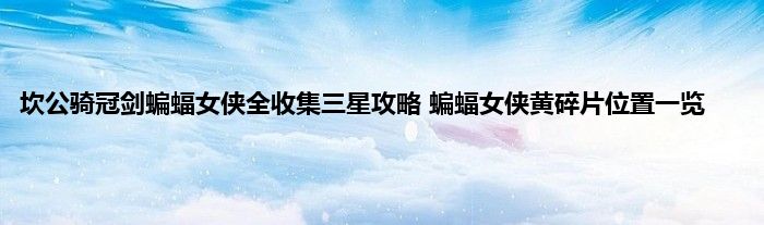 坎公骑冠剑中有个蝙蝠女侠的关卡,玩家通关比较简单,但是要三星通关,全收集的话就有一定的难度了,很多玩家想要全收集拿到全部的奖励,但是不知道怎么过关,小编整理了有关内容,下面就来尾随小编一起来看看吧。