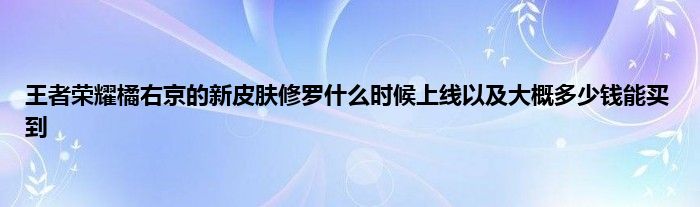 今天来聊聊关于王者荣耀橘右京的新皮肤修罗什么时候上线以及大概多少钱能买到的文章,游戏是很多人的选择,但是游戏玩多了也会身心疲惫,现在就为大家来简单介绍下王者荣耀橘右京的新皮肤修罗什么时候上线以及大概多少钱能买到,希望对各位小伙伴们有所帮助。