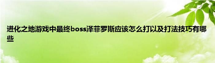 今天来聊聊关于进化之地游戏中最终boss泽菲罗斯应该怎么打以及打法技巧有哪些的文章,游戏是很多人的选择,但是游戏玩多了也会身心疲惫,现在就为大家来简单介绍下进化之地游戏中最终boss泽菲罗斯应该怎么打以及打法技巧有哪些,希望对各位小伙伴们有所帮助。