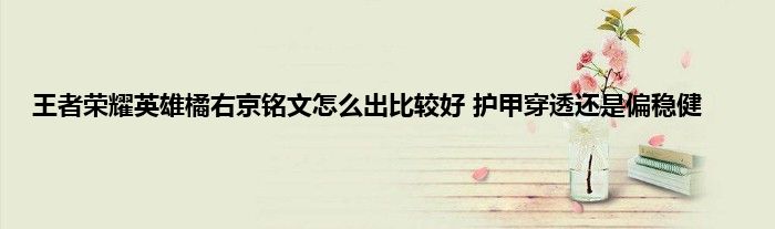 今天来聊聊关于王者荣耀英雄橘右京铭文怎么出比较好 护甲穿透还是偏稳健的文章,游戏是很多人的选择,但是游戏玩多了也会身心疲惫,现在就为大家来简单介绍下王者荣耀英雄橘右京铭文怎么出比较好 护甲穿透还是偏稳健,希望对各位小伙伴们有所帮助。