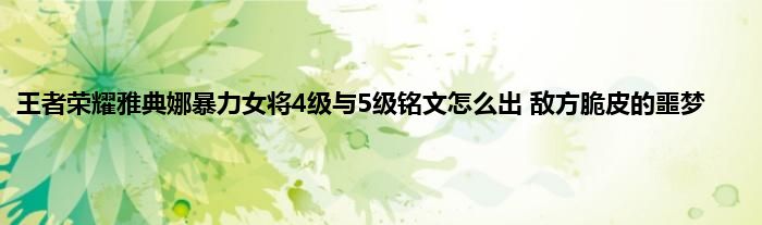 今天来聊聊关于王者荣耀雅典娜暴力女将4级与5级铭文怎么出 敌方脆皮的噩梦的文章,游戏是很多人的选择,但是游戏玩多了也会身心疲惫,现在就为大家来简单介绍下王者荣耀雅典娜暴力女将4级与5级铭文怎么出 敌方脆皮的噩梦,希望对各位小伙伴们有所帮助。